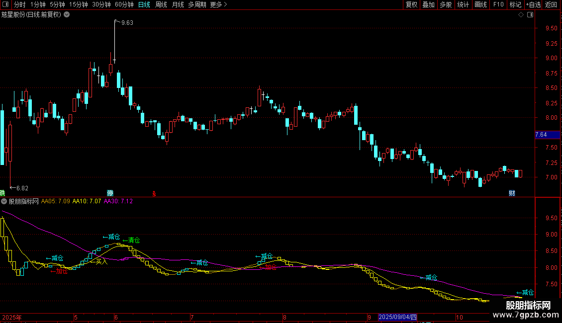 买入:=FILTER(MR,10);DRAWTEXT(减仓,HIGH*1.02,'←减仓'),COLORCYAN;