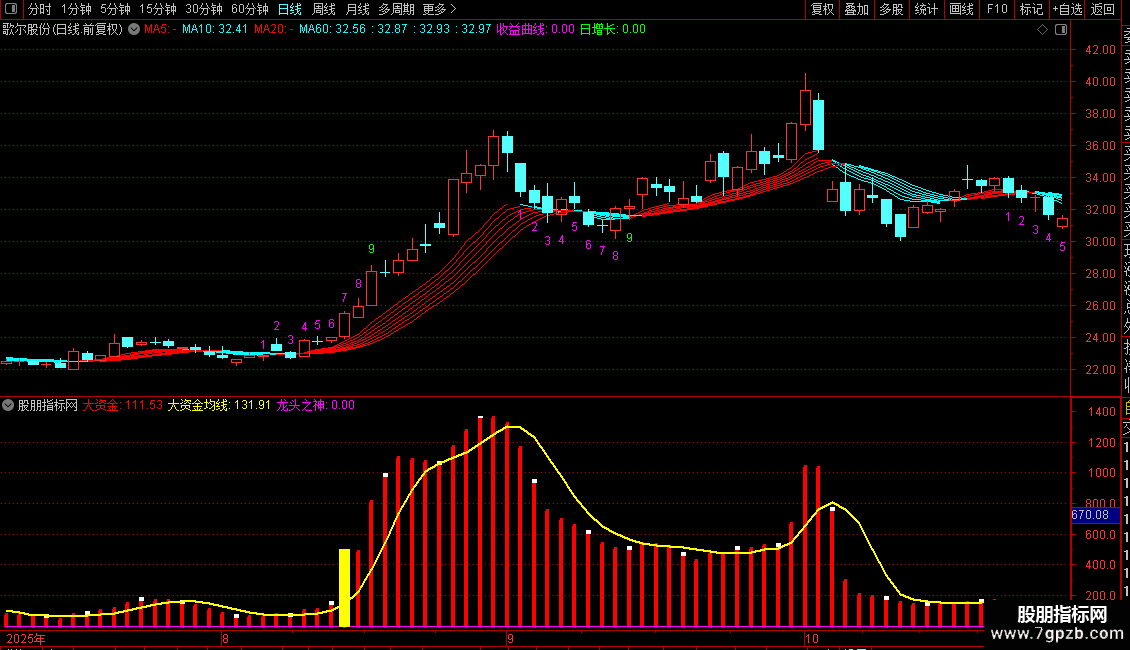 大资金均线:MA(ZBGS2,5),COLORYELLOW,LINETHICK2;