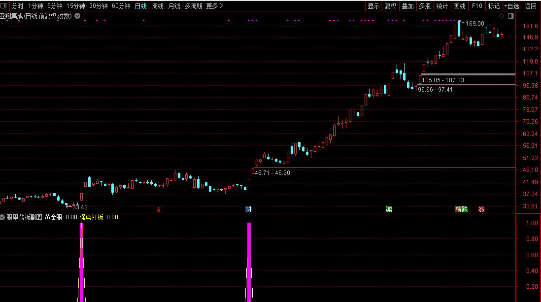 1. 副图公式:直接导入通达信副图,粉色柱为「黄金眼」信号、黄色标注为「强势打板」信号,可直观查看个股信号出现位置与量价、均线配合情况;