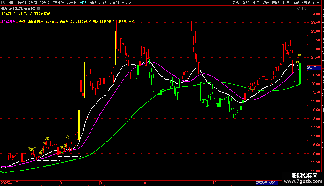 短线成本:EMA(CLOSE,17),LINETHICK2,COLORWHITE;