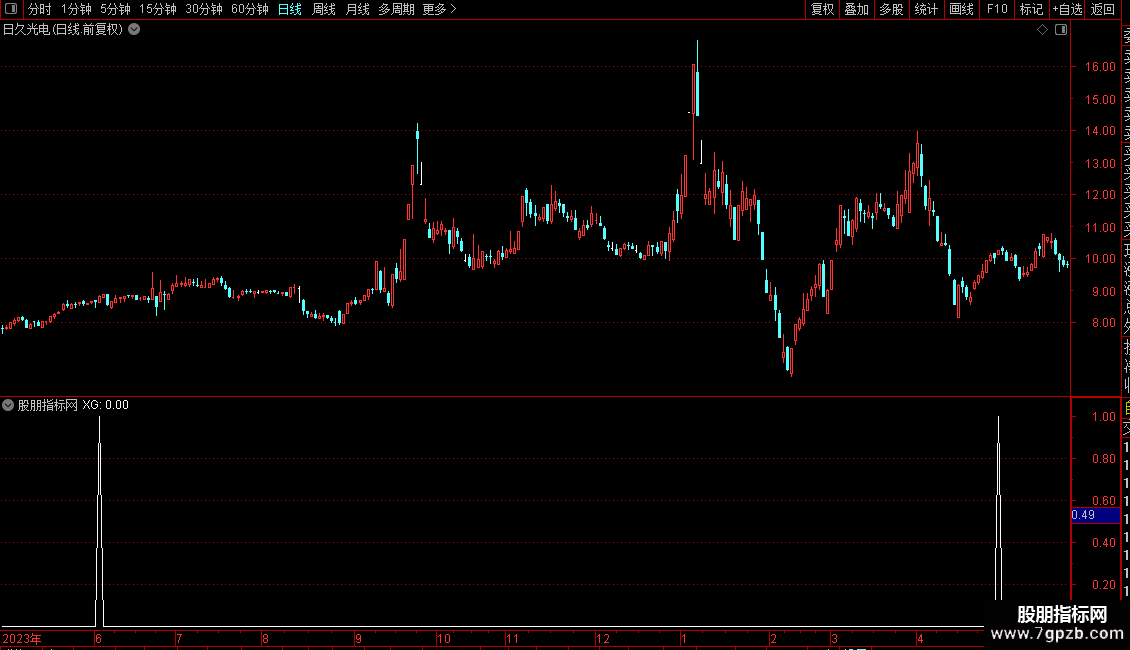 VARA:=LTSZZ< 300 AND JZF< 5.1 AND O/REF(H,1)< 1.02 AND IF(GL< 10,JZF< 1,GL>10);