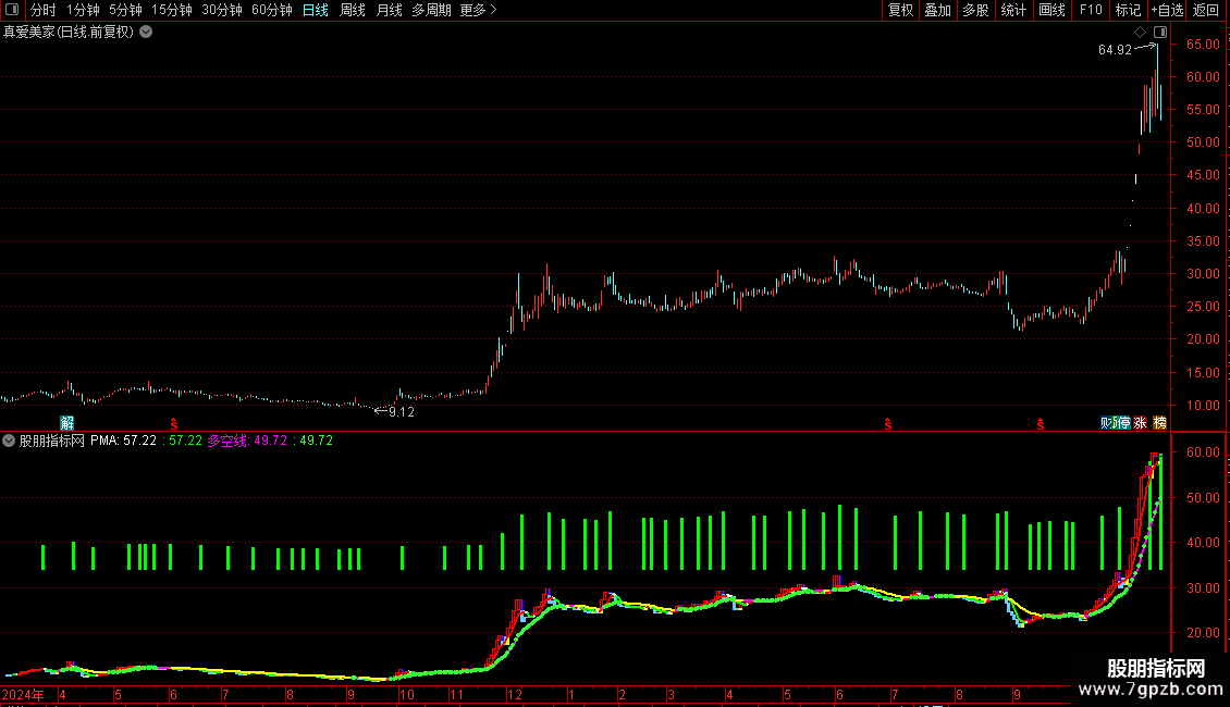 IF(A,多空线,DRAWNULL),COLOR33FF33,POINTDOT,LINETHICK4;