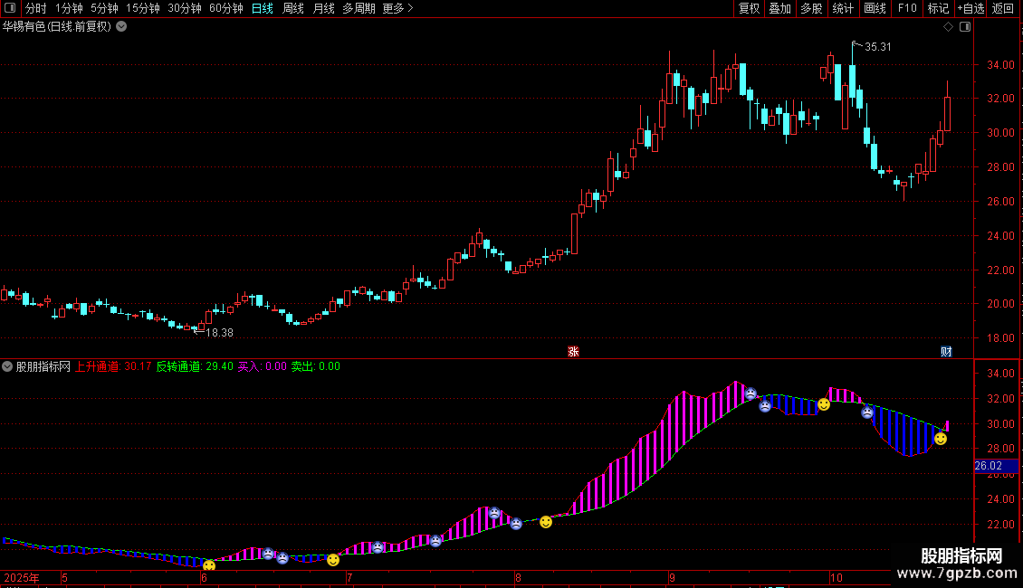 DRAWICON(买入,上升通道*1.01,5);