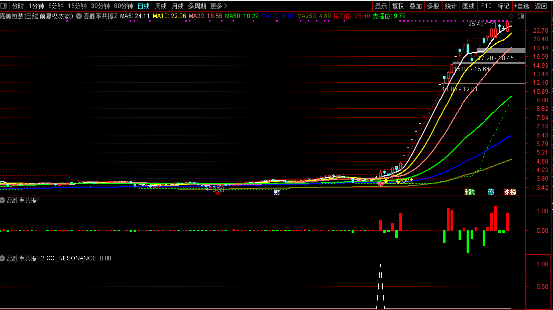 共振突破信号的计算逻辑基于股票公式指标的多维度验证,具体如下: