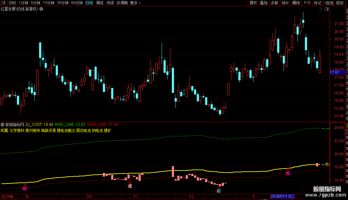 必须确认股价没有处于`RISK_LINE`(绿色线)之上(代码已自动过滤,但仍需留意)。