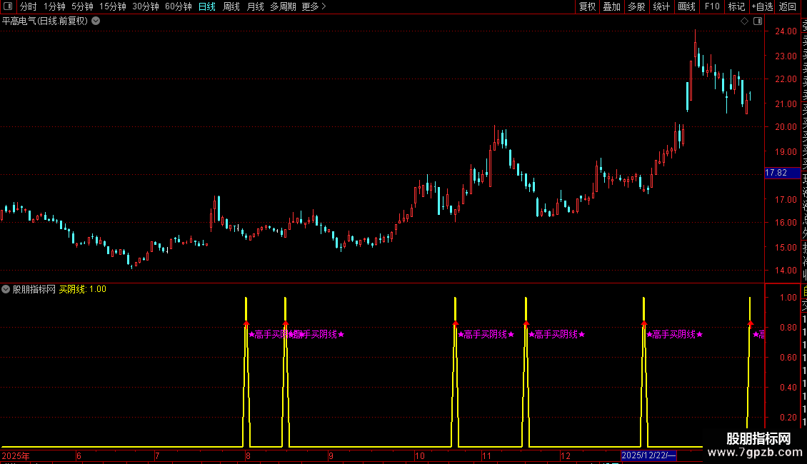 买阴线指标包含一副图一,是专业的尾盘买阴线指标。信号数量较多,无未来函数,提供指标源码,手机电脑通用。