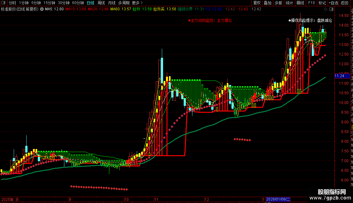 采用差异化的颜色标记与点位标注方案,将趋势强弱、支撑压力、资金动向等核心信息进行可视化呈现,通过固定位置的文字提示实现信号直观传达,同时保留指标独立可插拔特性,兼容不同行情软件的显示逻辑,满足专业投资者的个性化分析需求。