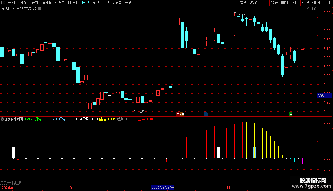 MACD顶背:IF(D1>0,0.1,0),COLOR00FF00,POINTDOT;