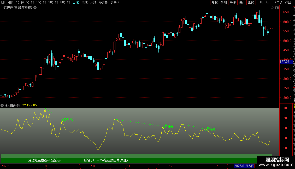 DRAWTEXT_FIX(C>0,0.3,0.90,0,'绿色(-16~-25)是超跌区间(关注)'),COLORWHITE;
