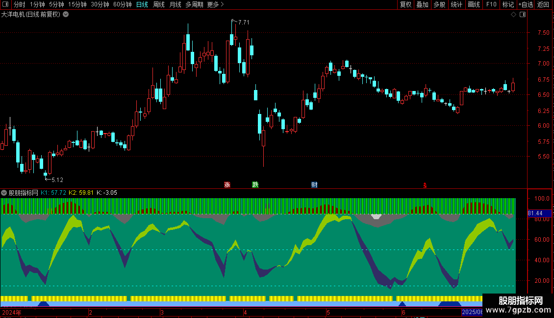 低位线:=IF((趋势-VARL6<(-70)),0,-5);