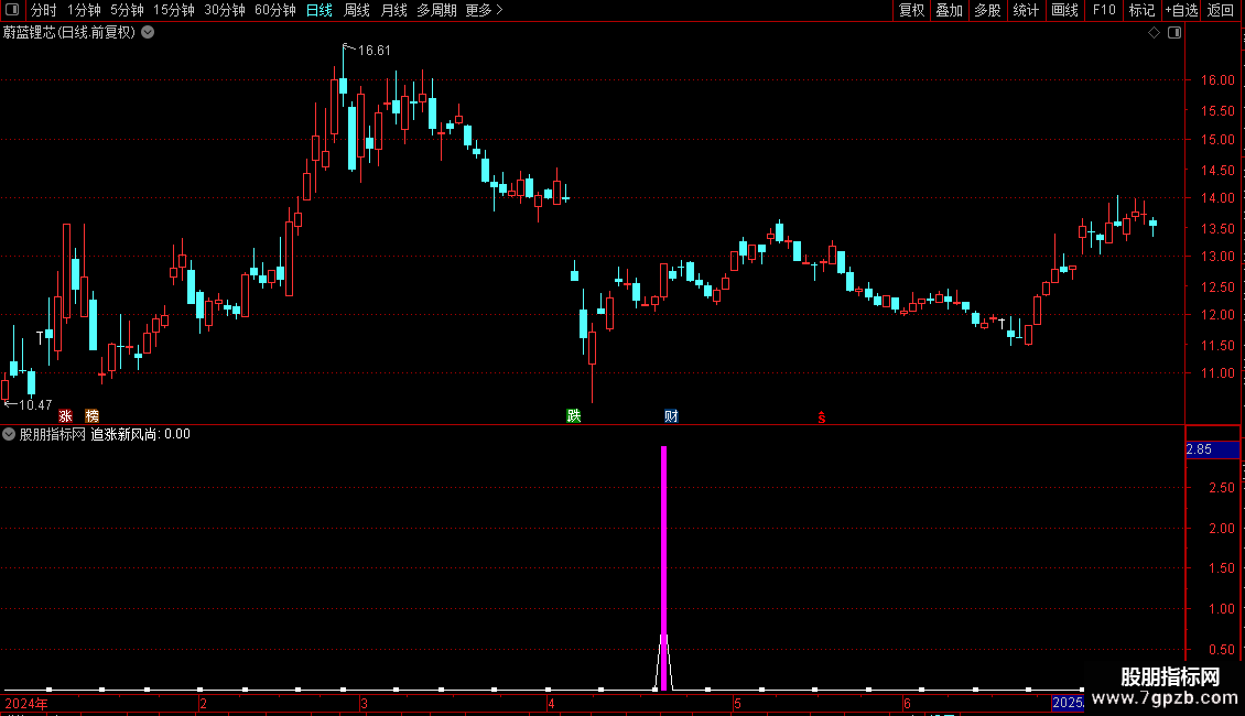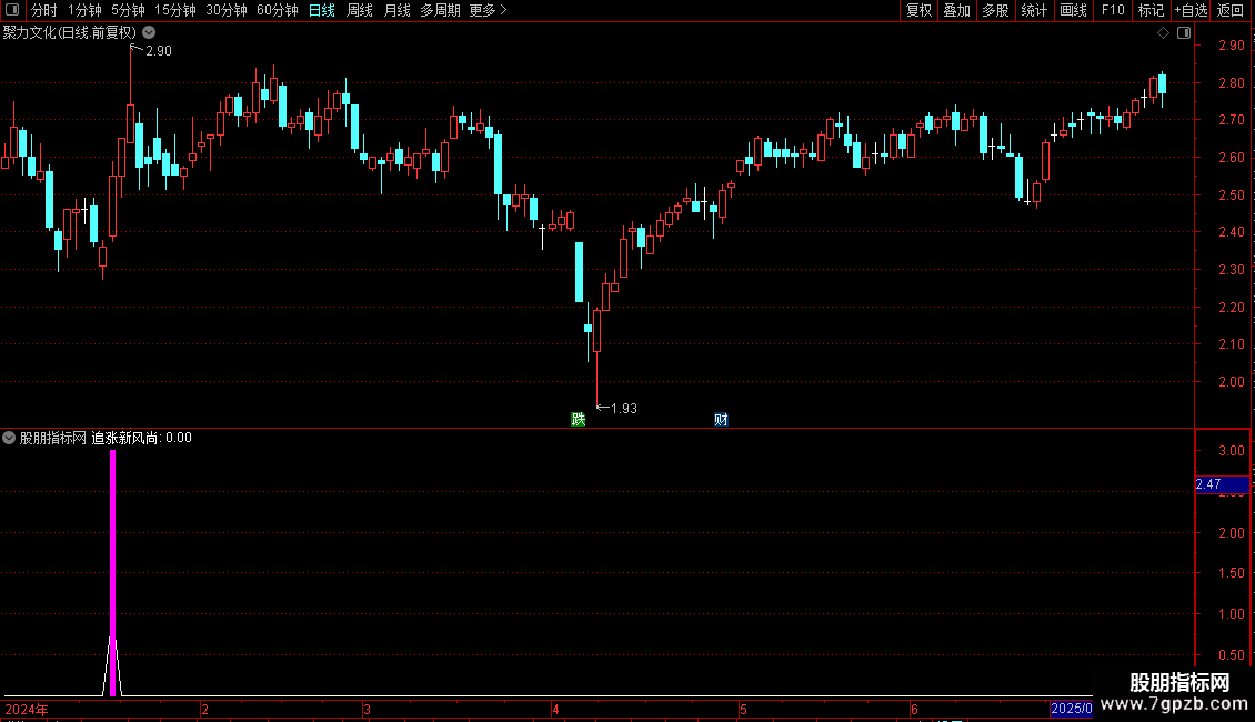 压力位:=IF(CROSS(J24,J),HIGH,REF(HIGH,BARSLAST(CROSS(J24,J)))),COLOR00FF00;