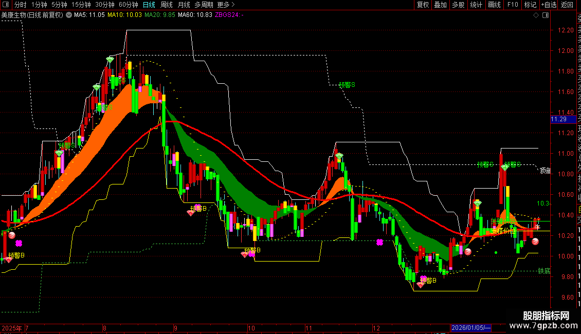 适用于日线级别波段操作,当价格靠近“铁底”并出现绿色●或“预警B”时可关注低吸机会;接近“顶部”且出现S预警或红色K线转弱时,应警惕回调风险。配合量能与大盘环境综合判断,效果更佳。
