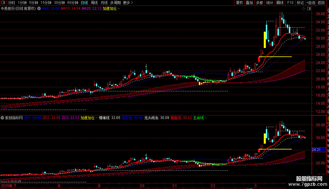 3. 红色操盘线上穿绿色生命线确认多头,加速加仓线提示趋势强化。该指标适用于短线追涨龙头股,需结合K线站上通道与资金流入验证信号有效性。