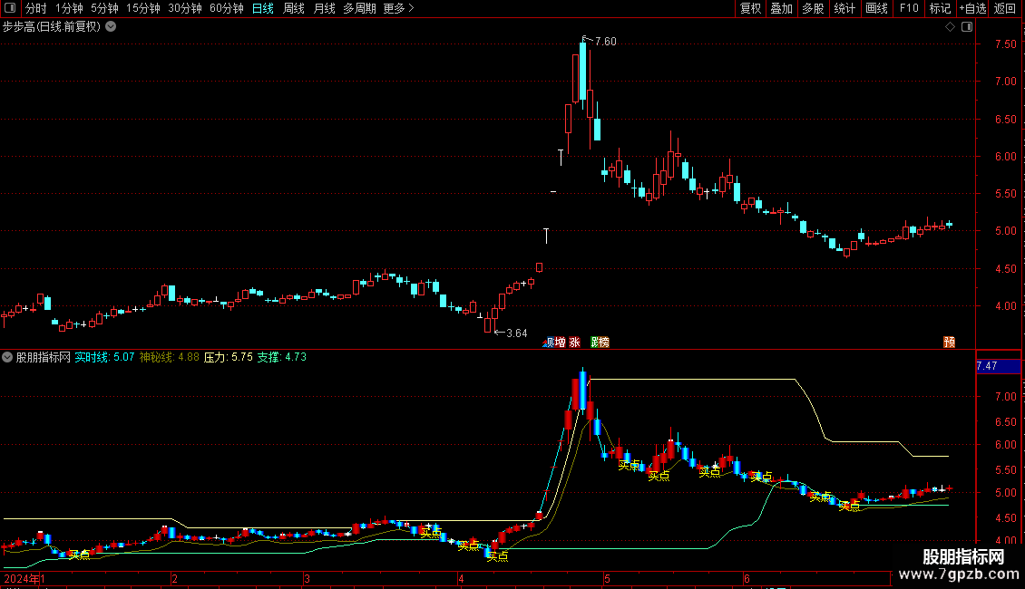 买:=IF(CROSS(M18,M2),5,0* 10000),COLORFF00FF,LINETHICK2;
