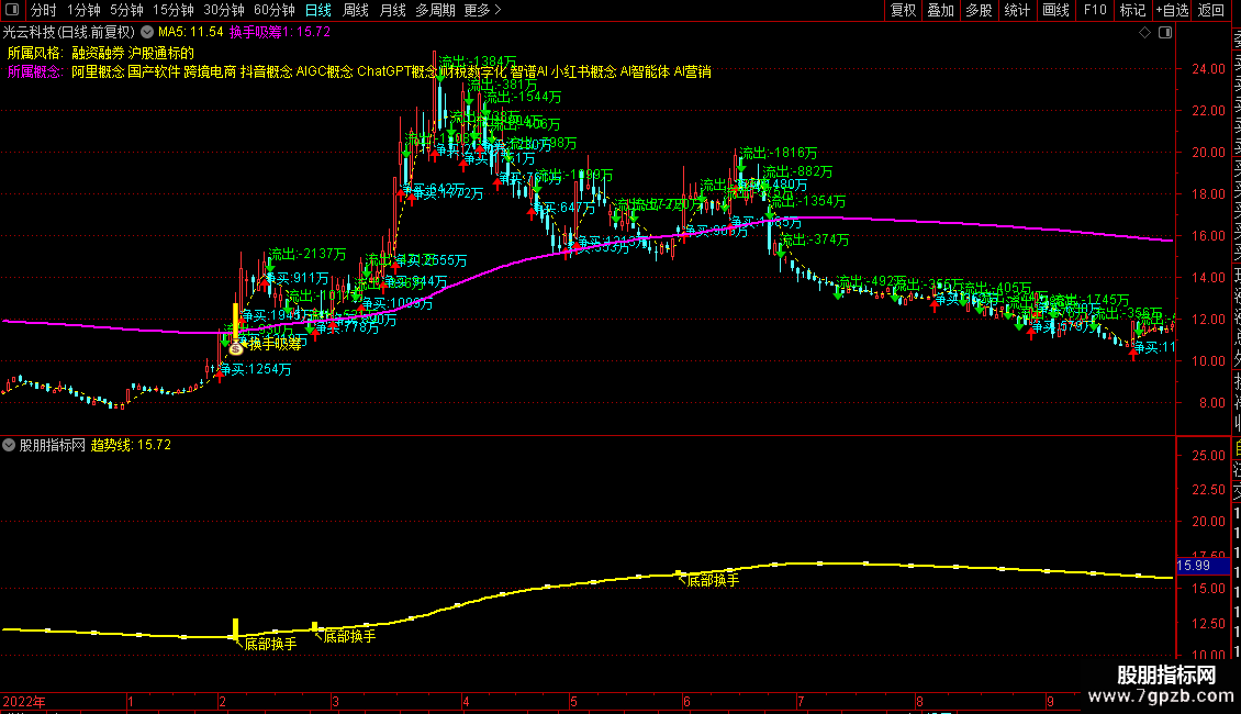 趋势线:X_7*1.118,LINETHICK2,COLORYELLOW;