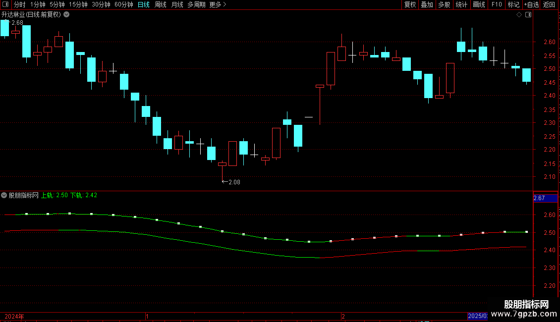 NOTEXT_B2:IF(C>下轨,B1,DRAWNULL),COLORRED;