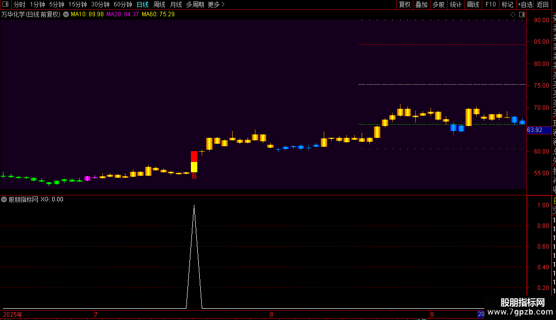 三、智能选股信号体系:红黄双色K线为明确买入信号,经严格回测验证: