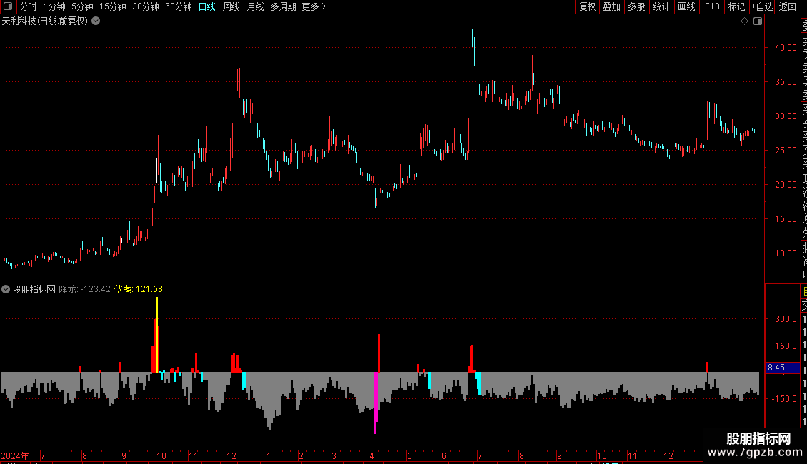 龙回头:=REF(伏虎,1)< 0 AND 伏虎>0 AND 龙回头类型;