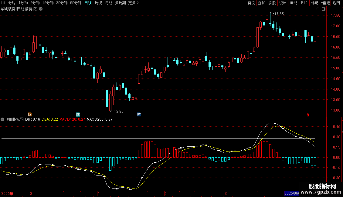 MACD250:REF(MACD/2,BARSLAST(MACD=HHV(MACD,250))),COLORWHITE,LINETHICK2;