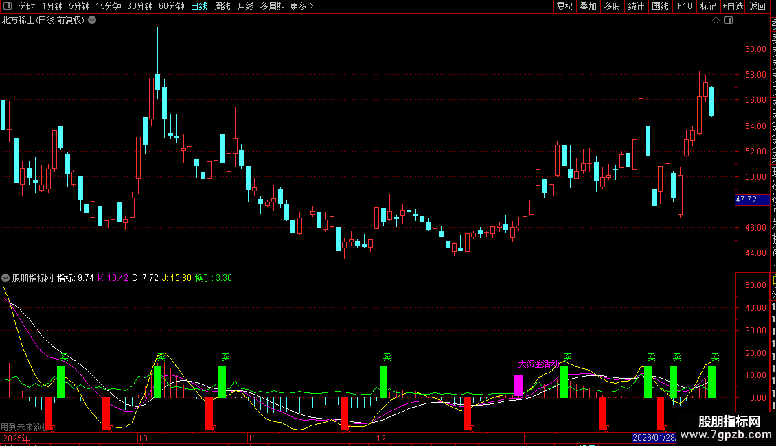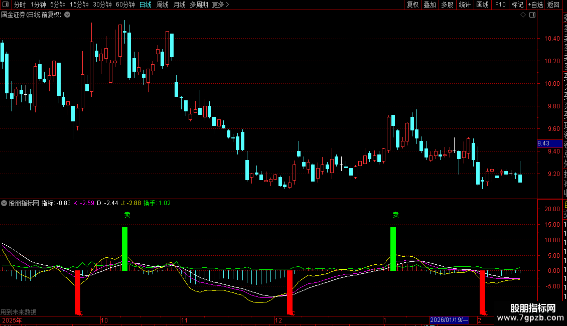 J线(黄色):为K、D的衍生线,波动更为灵敏。