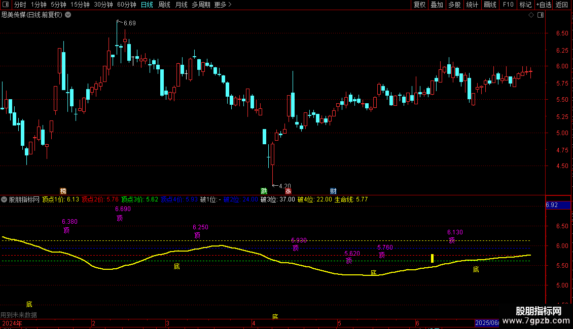 指标定义的“顶点”和“底点”是局部(前后7根K线范围内)的极值点。