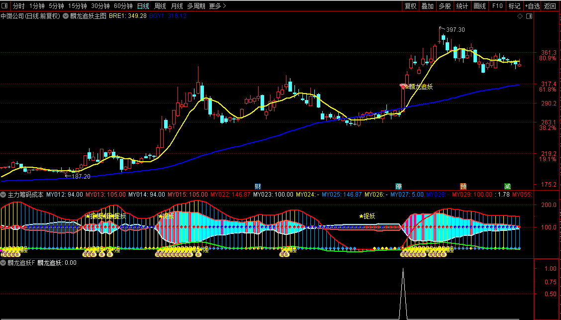 通达信『麟龙追妖+主力筹码成本』主副/选组合精准捕捉妖股的筹码与趋势双维度源码