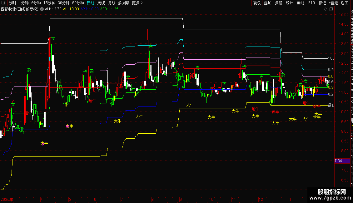 注意公式给出的短牛 中牛 大牛等股票技术公式信号 它们代表不同程度的上涨潜力 是进入市场的良好提示