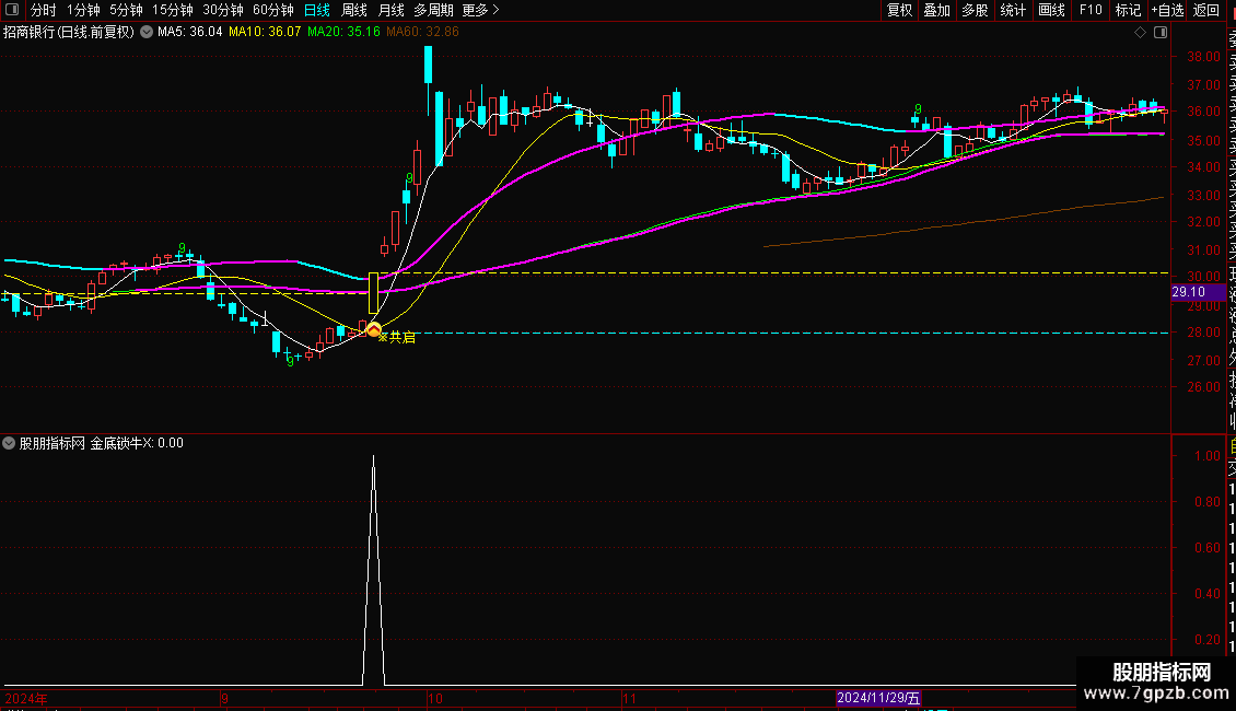 本金底锁牛指标为主图综合操盘指标,兼顾趋势研判 精准买点信号 量能资金分析 多周期共振四大核心功能,适用于A股股票日线级别分析,是通达信趋势波段型+持仓综合型主图指标,所有信号均为精准买点提示类信号。