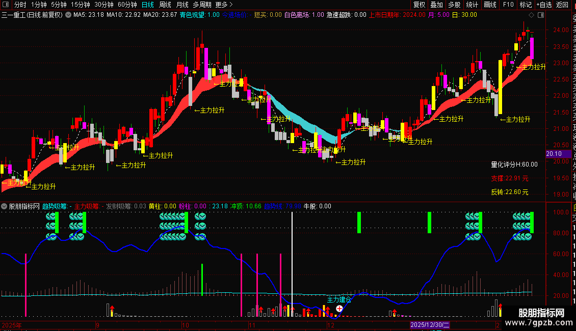 1. 主图:红色K线持股,灰色观望,出现“主力拉升”提示可逢低介入,白色离场信号需减仓;参考量化评分(≥60分偏强势)和支撑/阻力位设置止盈止损。