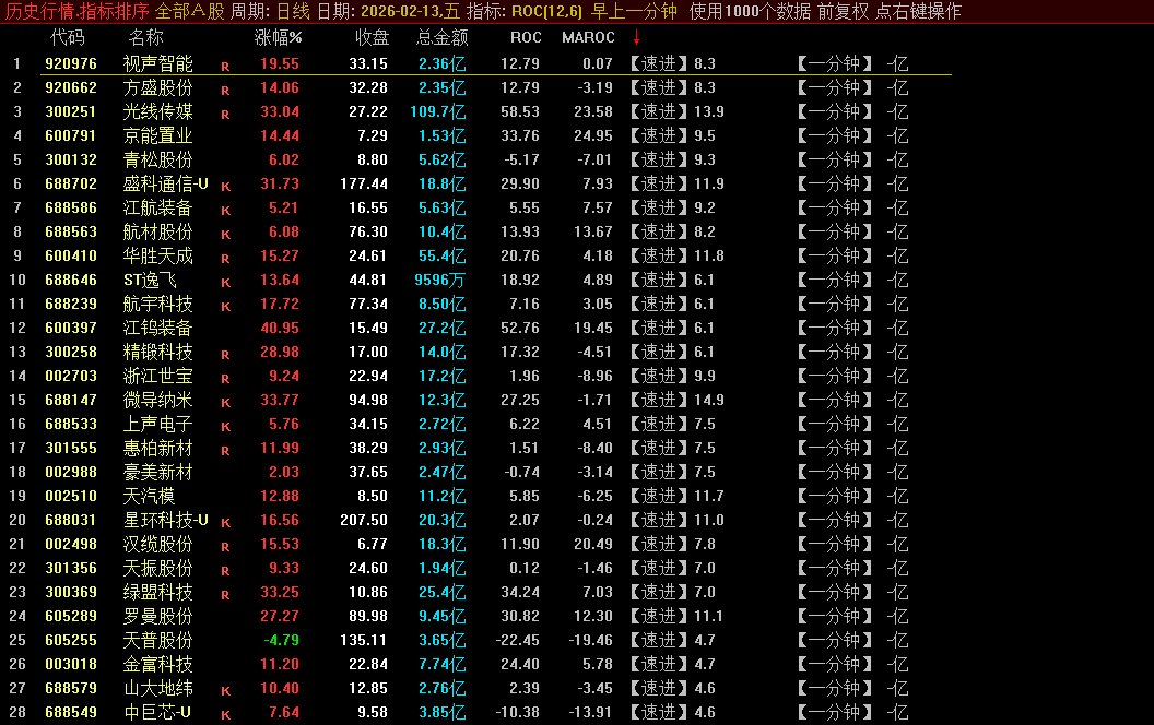 集合竞价.早上开盘第一分钟金额..开盘异动金额.. 一分钟速进大于3以上.大涨....速进大于5..涨停..也要结合盘面和资金合力和经验......