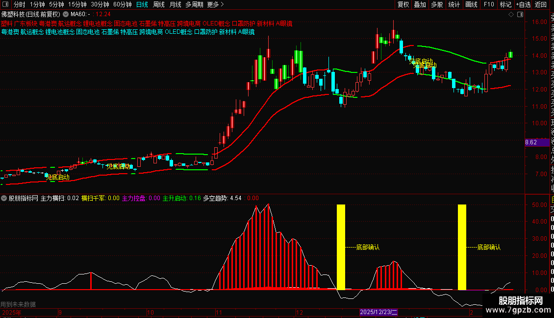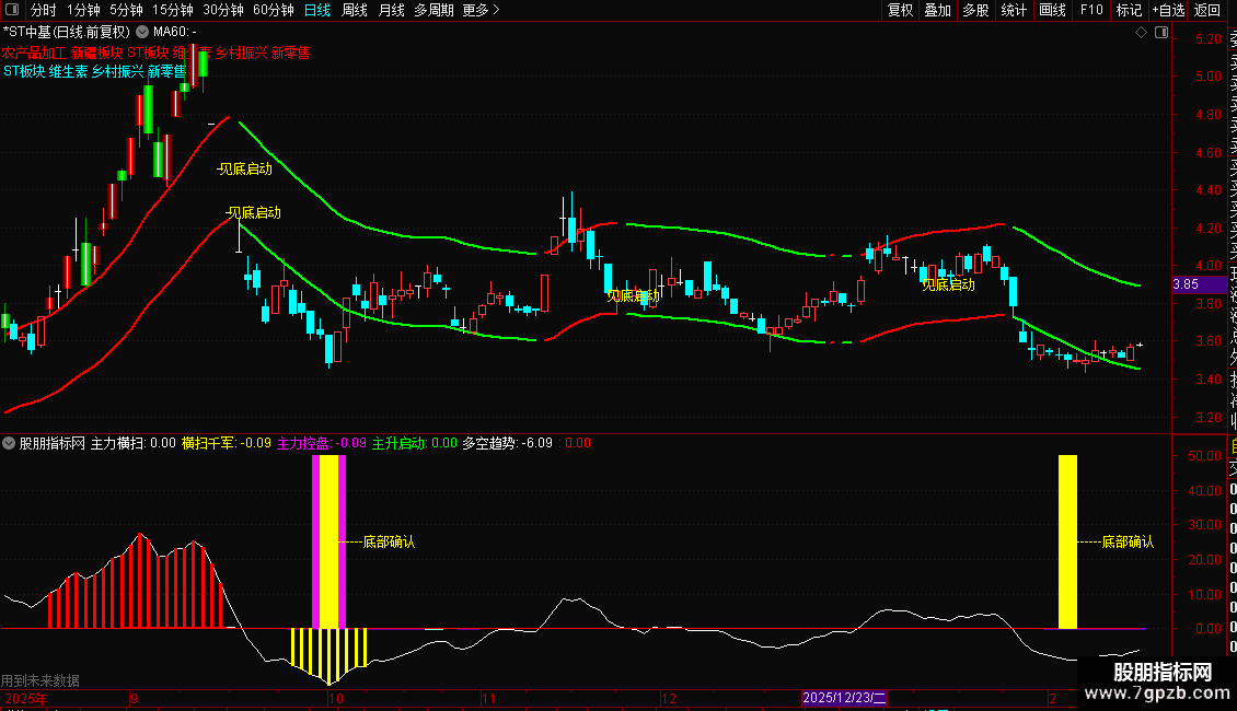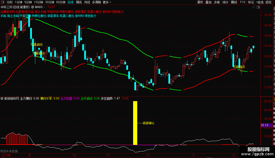 操作策略:当出现"见底启动"提示时,说明股价超跌且趋势转强,可逢低布局;当K线变色突破上轨时,表明多头发力,可顺势跟进;轨道线向上运行时持股,向下时谨慎观望。