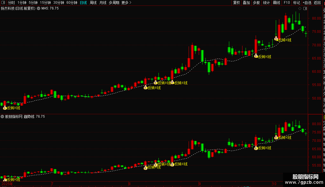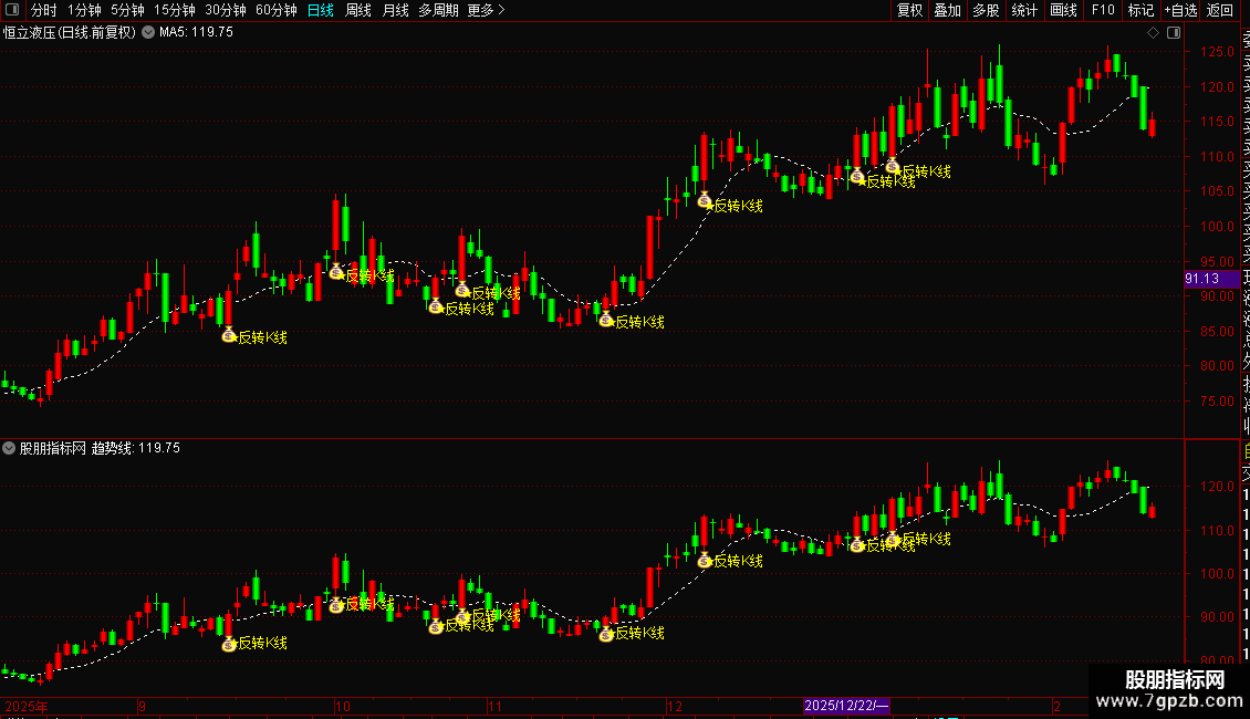 DRAWTEXT(条件,L*0.98,'★反转K线'),COLORYELLOW;