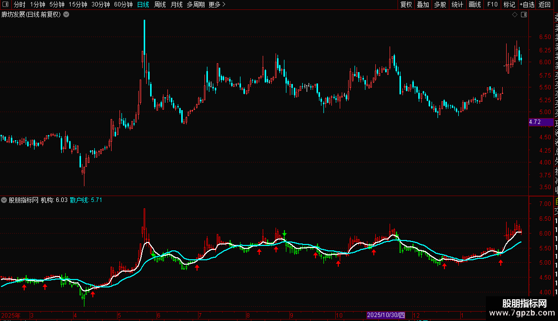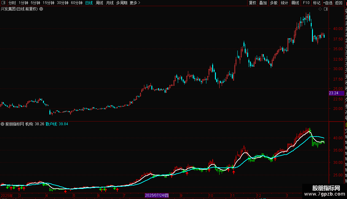 3. 机构与散户线:通过两条不同周期的均线(6日和18日)来粗略模拟“机构”与“散户”的成本趋势,其相对位置和交叉可辅助判断资金力量对比。