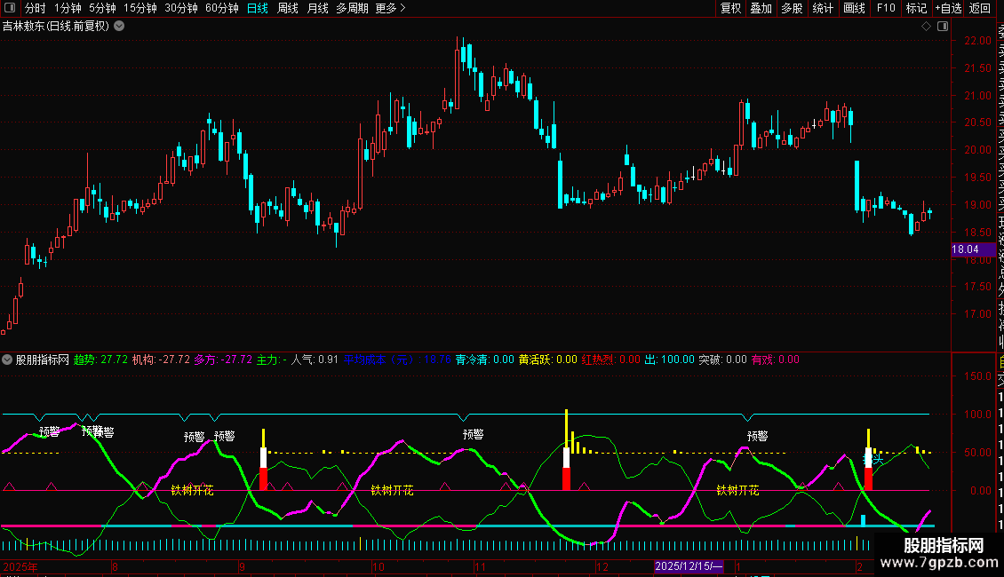 DRAWTEXT(CROSS(机构,趋势),0,'-----铁树开花'),COLORYELLOW;