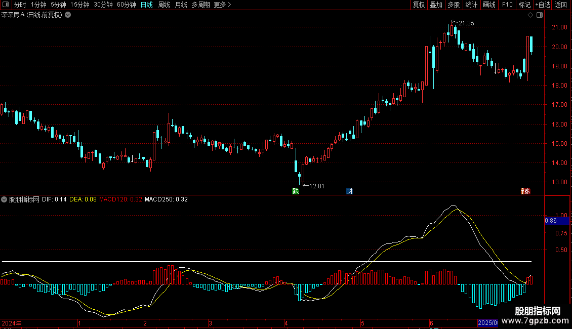 MACD250:REF(MACD/2,BARSLAST(MACD=HHV(MACD,250))),COLORWHITE,LINETHICK2;