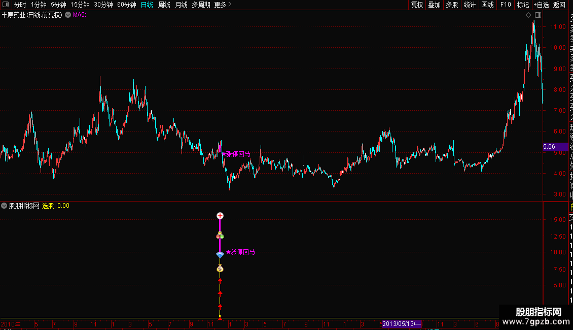 DRAWTEXT(选股,10,' ★涨停回马'),COLORFF00FF;