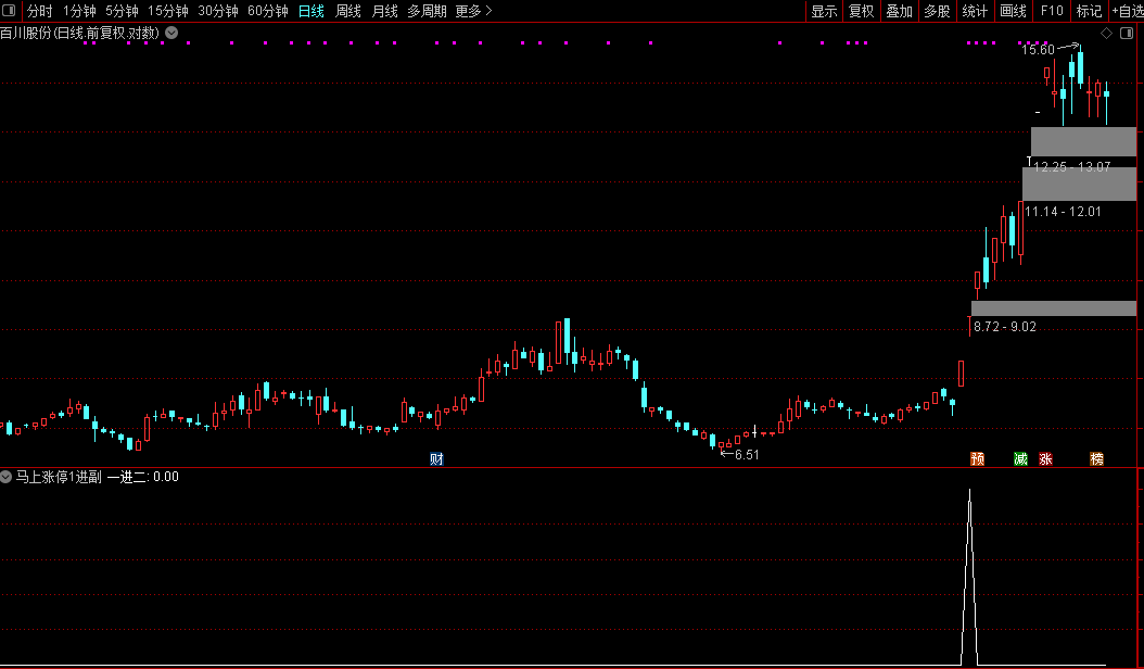 当公式发出“一进二”信号时,表示该个股在首板后,量价关系与技术指标等方面已达到晋级二板的核心条件。此时可结合盘面走势、板块热度等因素,进一步分析合适的介入时机。