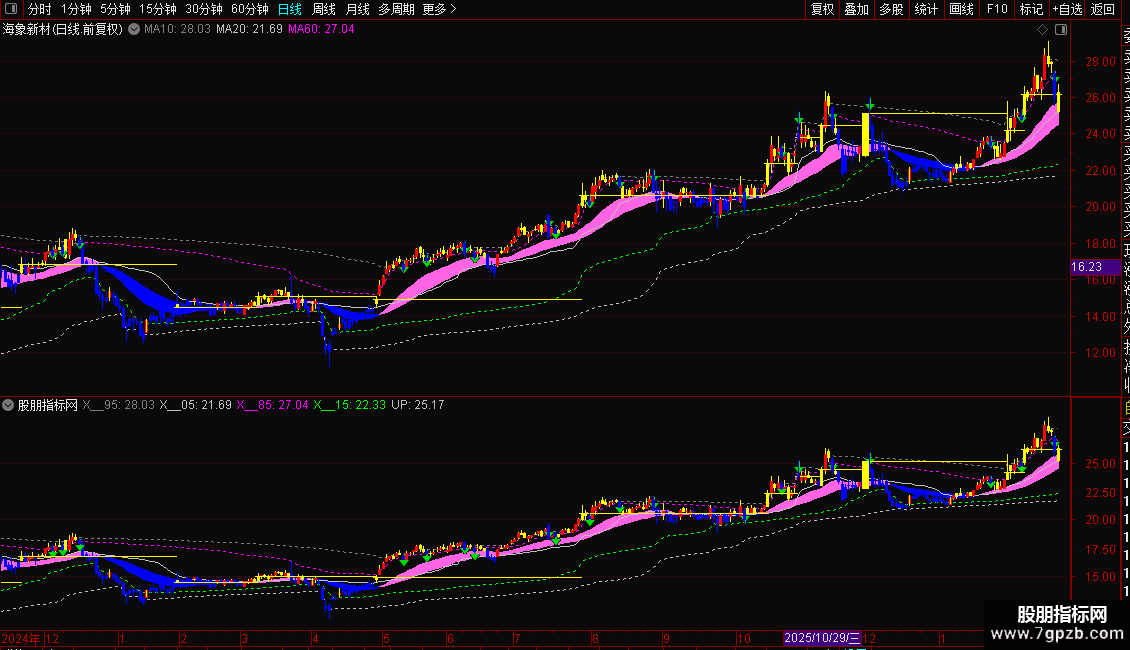 DRAWBAND(主升浪1,RGB(0,0,255),主升浪2,RGB(255,100,228));