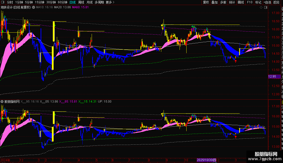 量化对冲53:=MA(量化对冲35-REF(量化对冲35,PERIOD),5*PERIOD)+2*STD(量化对冲35-REF(量化对冲35,PERIOD),5*PERIOD);