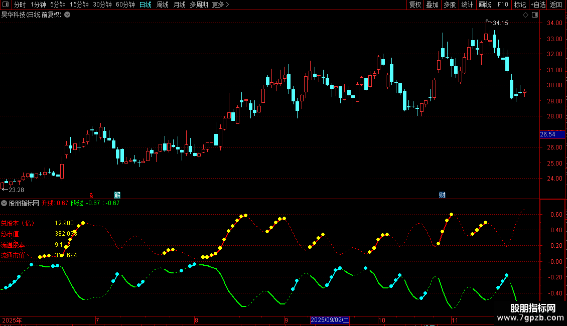 降线: -STD(中线,7),COLORGREEN,DOTLINE,LINETHICK1;