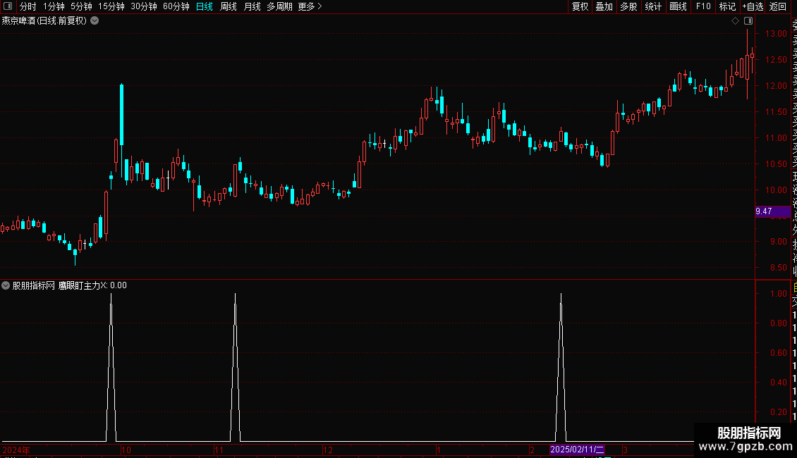 鹰眼盯主力X:AA1 AND AA2 AND AA3 AND NOWPAY>=JIAOH AND TOPAY>=0 AND (SANPAY-NOWPAY)<9.5 AND XGG1;
