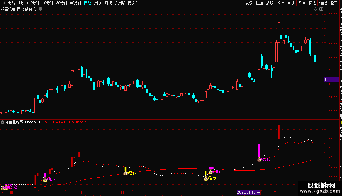 2. 当K线呈紫色并标注“★加仓”,代表短期强势确认,可加仓跟进;