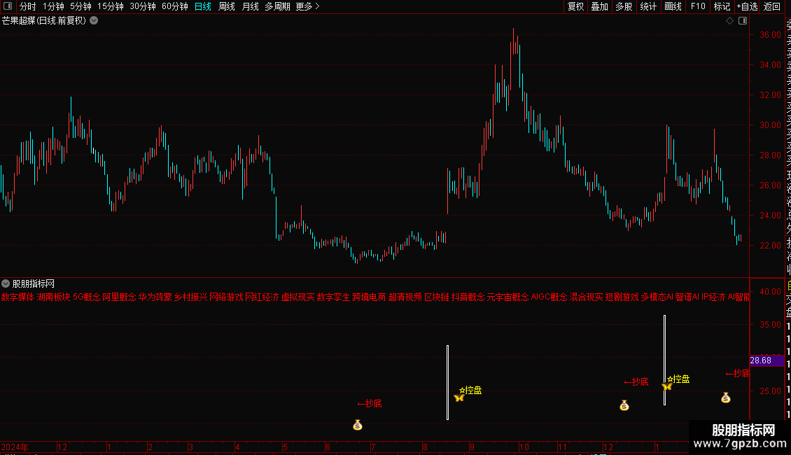 DRAWTEXT(BARSLASTCOUNT(X_CQ)=1,1.097*H,'←抄底'),COLORRED;