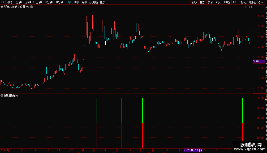 信号解读:当图表上出现红色和绿色的柱状线时,代表系统发出了一个潜在的买入信号。这表明该股在强势背景下完成了“先跌后涨”的形态转换,可能即将开启新一轮上涨。