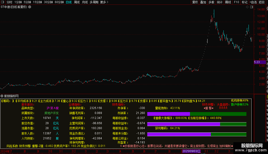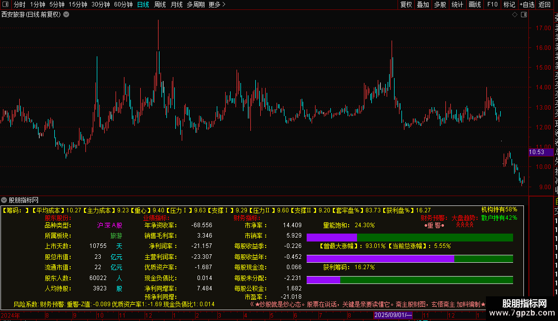 筹码与成本分析:显示当前的获利盘比例、平均成本、主力成本以及关键的支撑位和压力位。