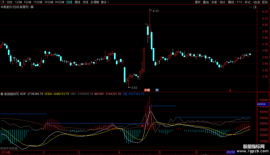 T线:REF(OBV,BARSLAST(D1)),COLORFF6600,NODRAW;