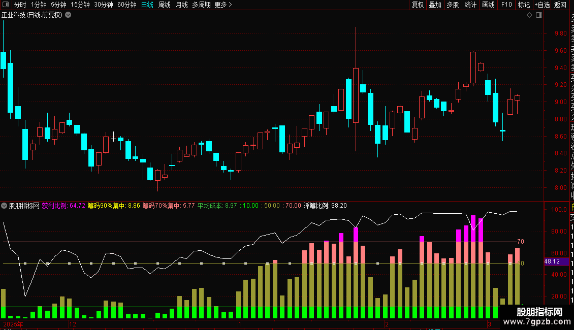 指标主要用于实时监测市场筹码的盈利状况和集中程度,帮助投资者判断持仓成本结构、识别主力控盘迹象,并辅助制定买卖决策。