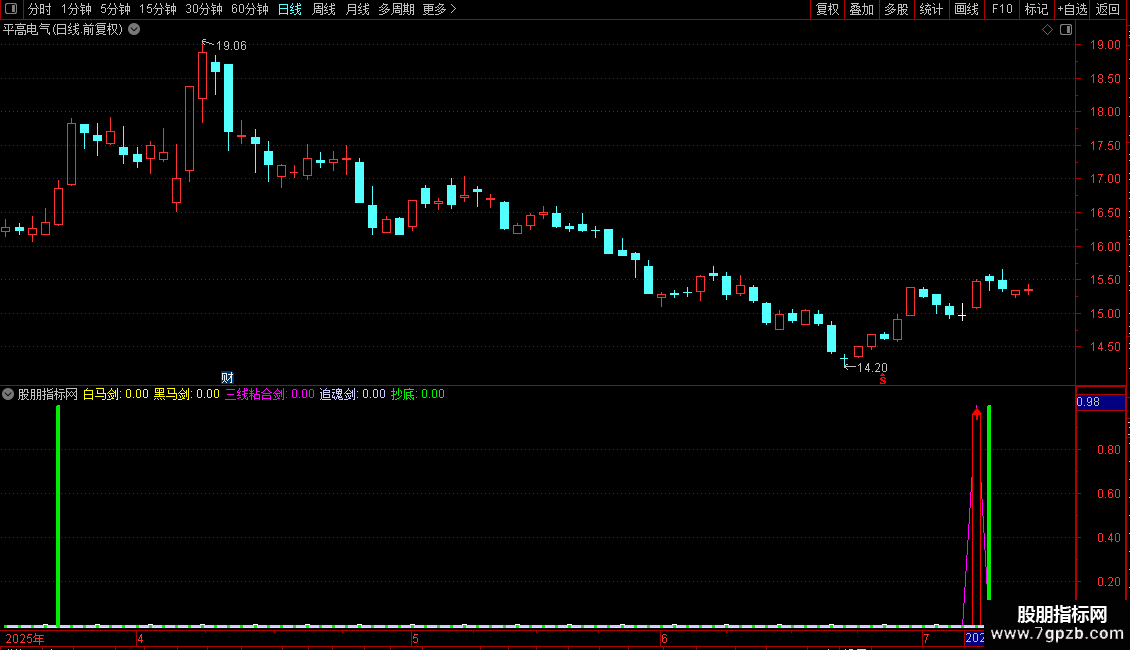 STICKLINE(黑马剑,0,黑马剑*0.86,2,1),LINETHICK3 ,COLOR00FFFF;