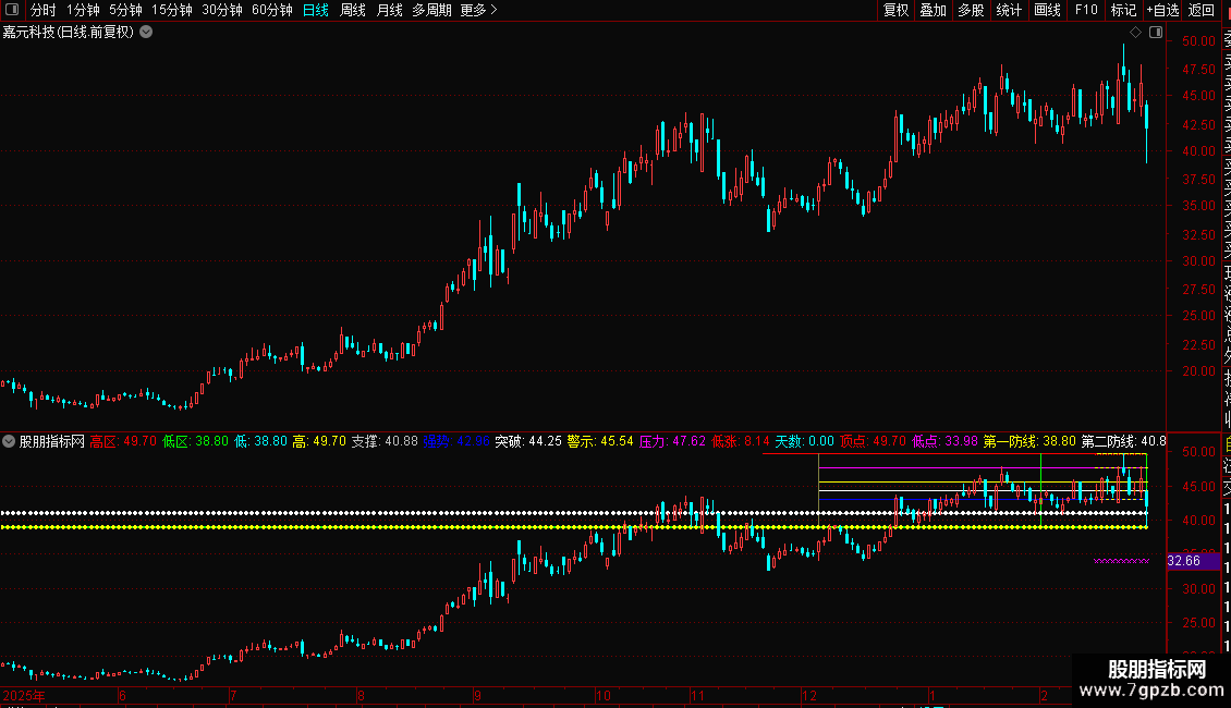 1. 副图公式:导入通达信副图指标后,可自定义参数K(统计周期)、N(显示周期),重点关注“支撑-0.191”“压力-0.809”区间,K线触及低区+第一/二防线是低吸参考,触及高区+压力线是止盈参考;