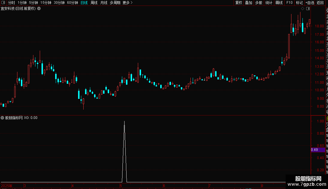 XG: A1>A2 AND A2>A3 AND A1>REF(A1,1) AND A2>REF(A2,1) AND A3>REF(A3,1) AND crOSS(MA(C,5),MA(C,60)) AND C>MA(C,60) AND 角05>70 AND 角10>60 AND 角20>45 AND COUNT(MA(C,60)>REF(MA(C,60),1),5)>3 AND O>REF(C,1);
